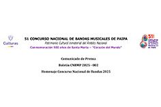 Congreso Técnico Concurso Nacional de Banda (CNBMP) 51 años – Categorías Infantil, Juvenil, Básica, Fiestera, Especial y Universitaria